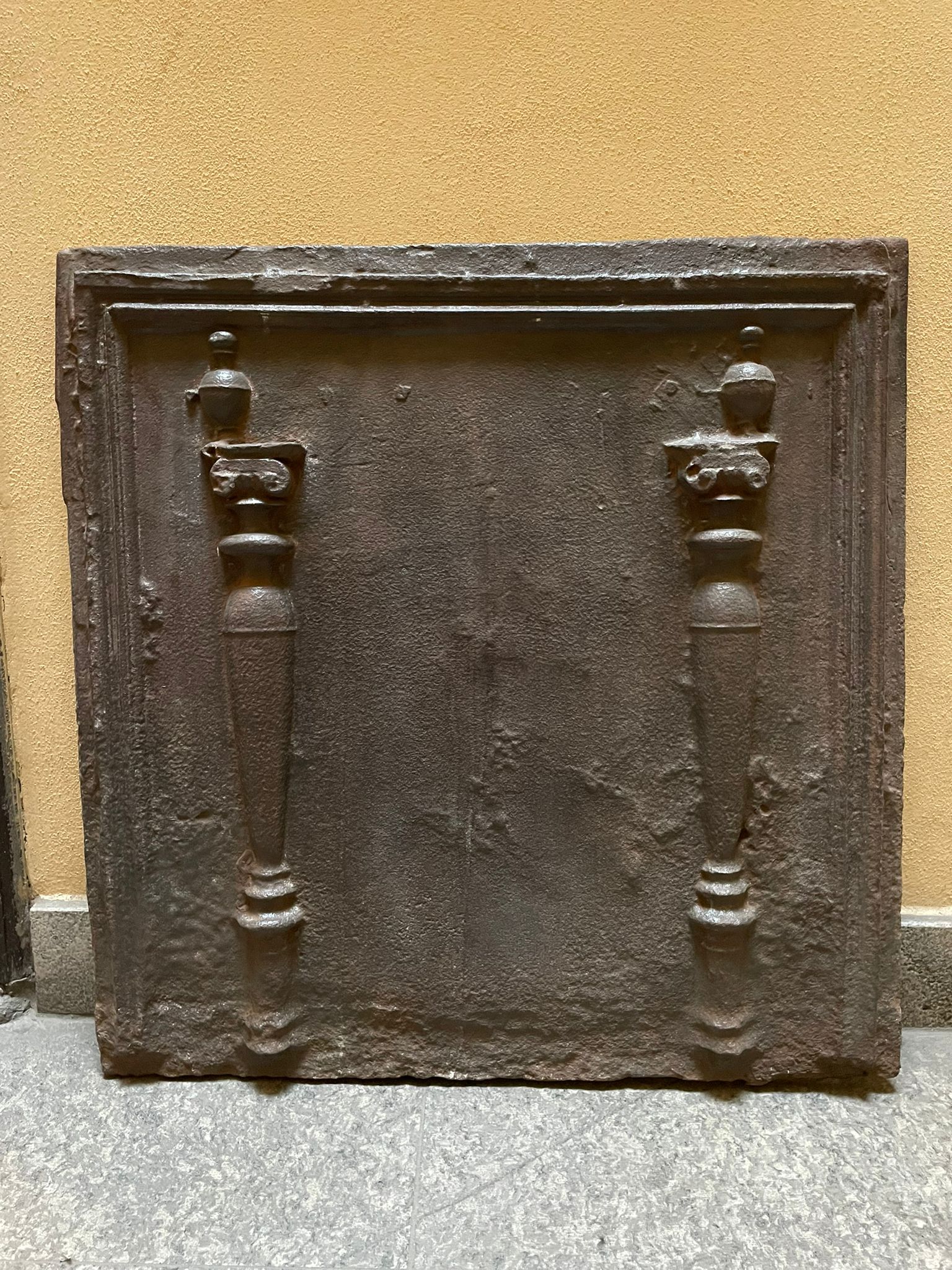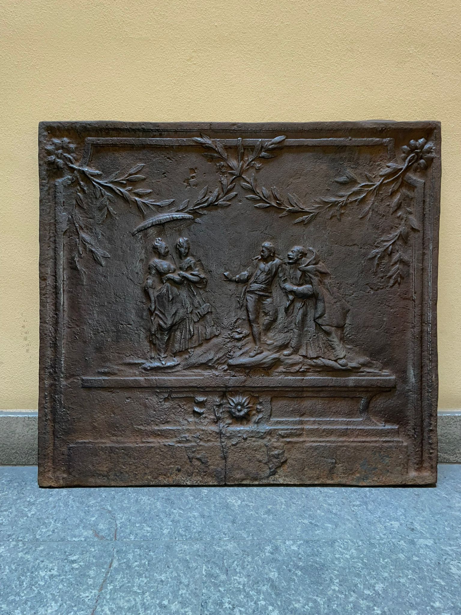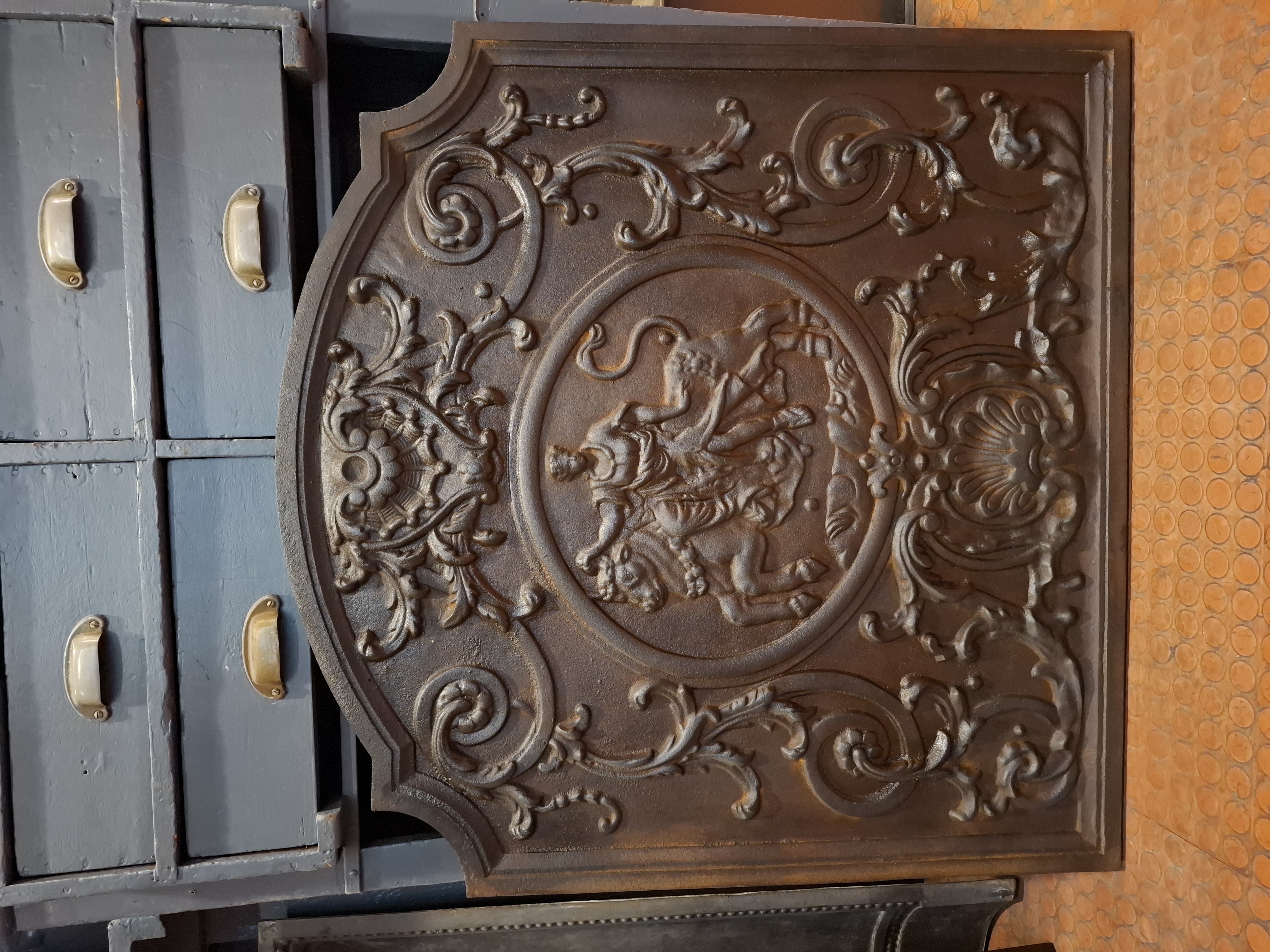 Piastre in ghisa antiche per caminetto, stile Luigi XV e XVI, Impero, Neoclassiche, raffiguranti il Re sole, scene di Caccia e di guerra, date.