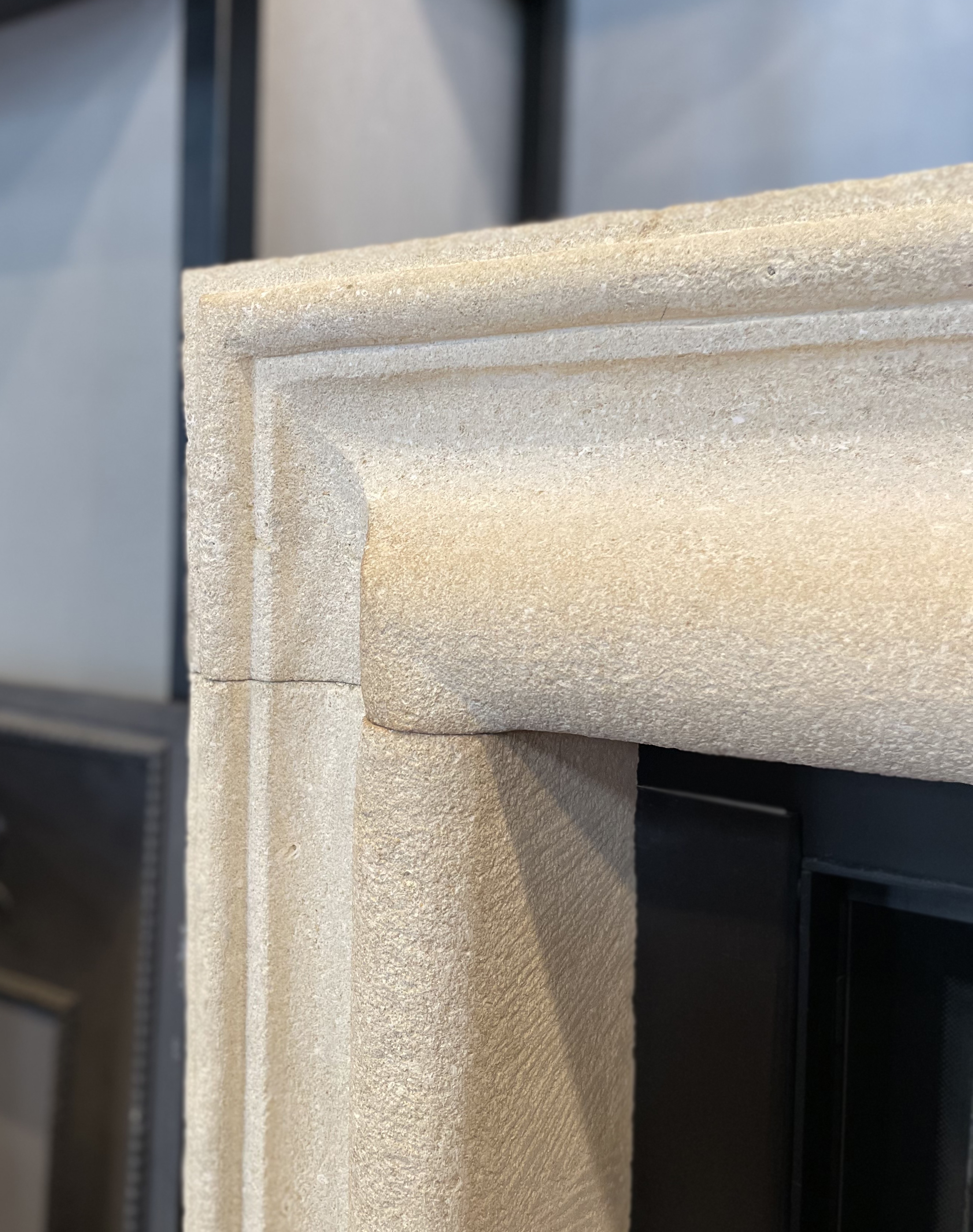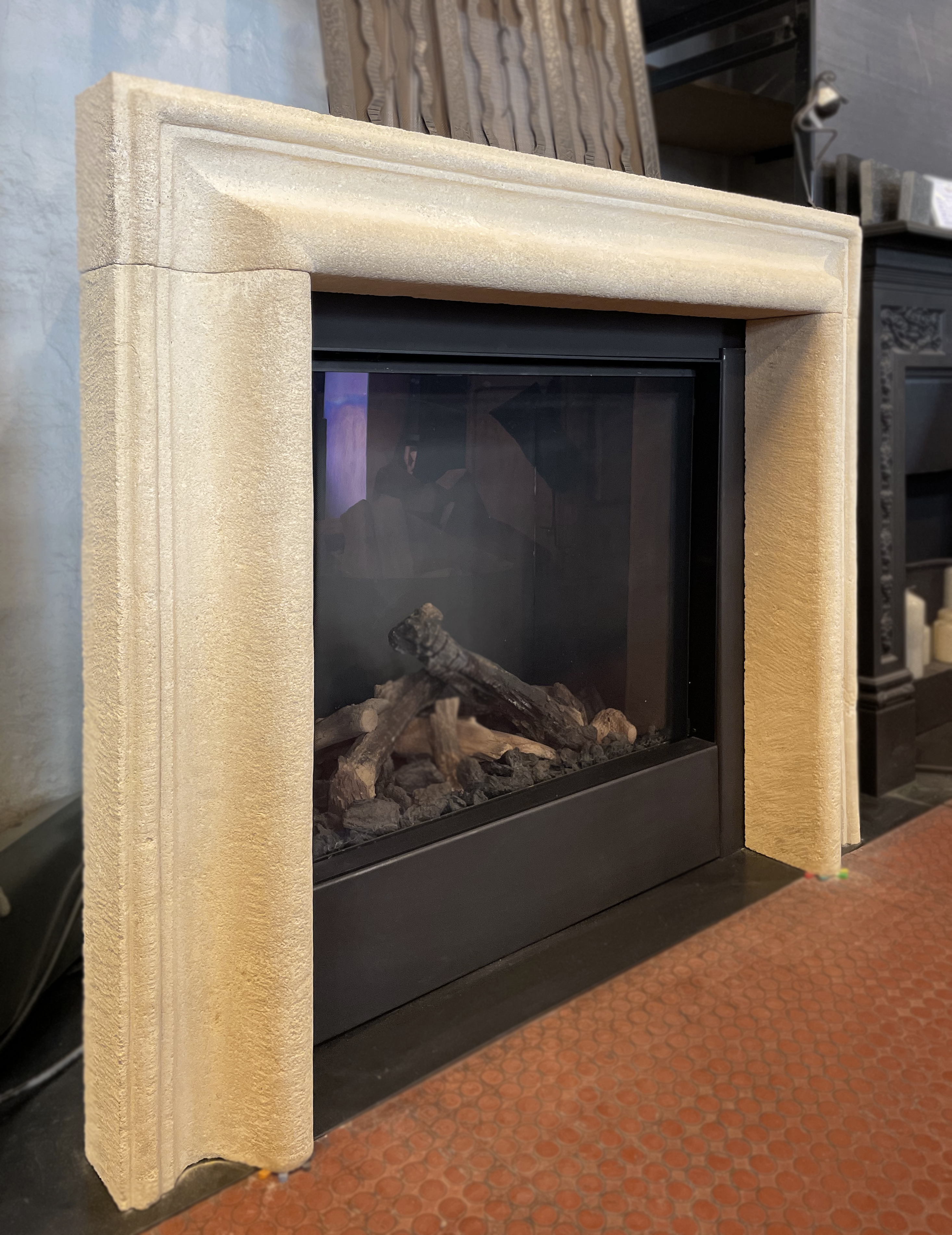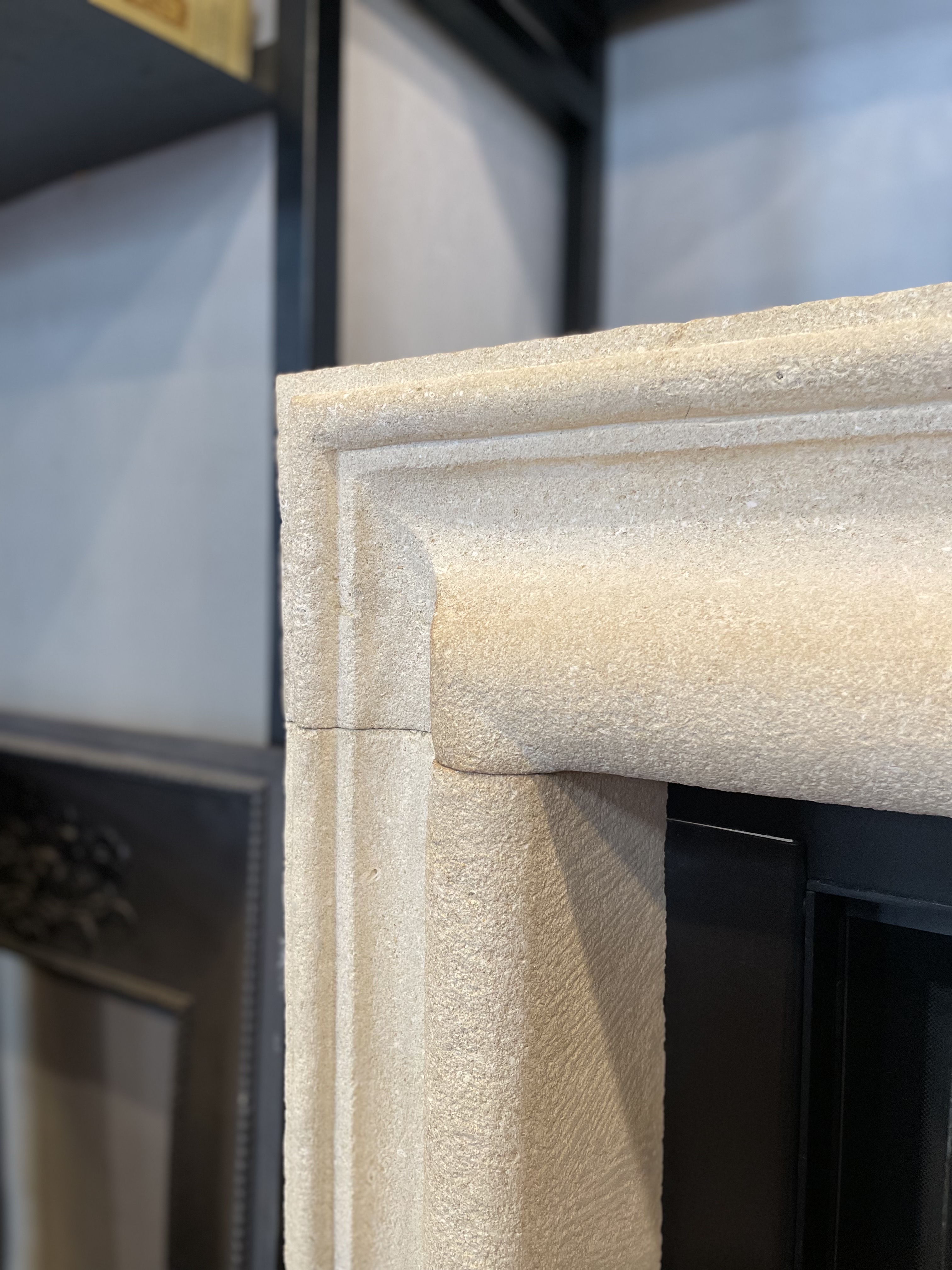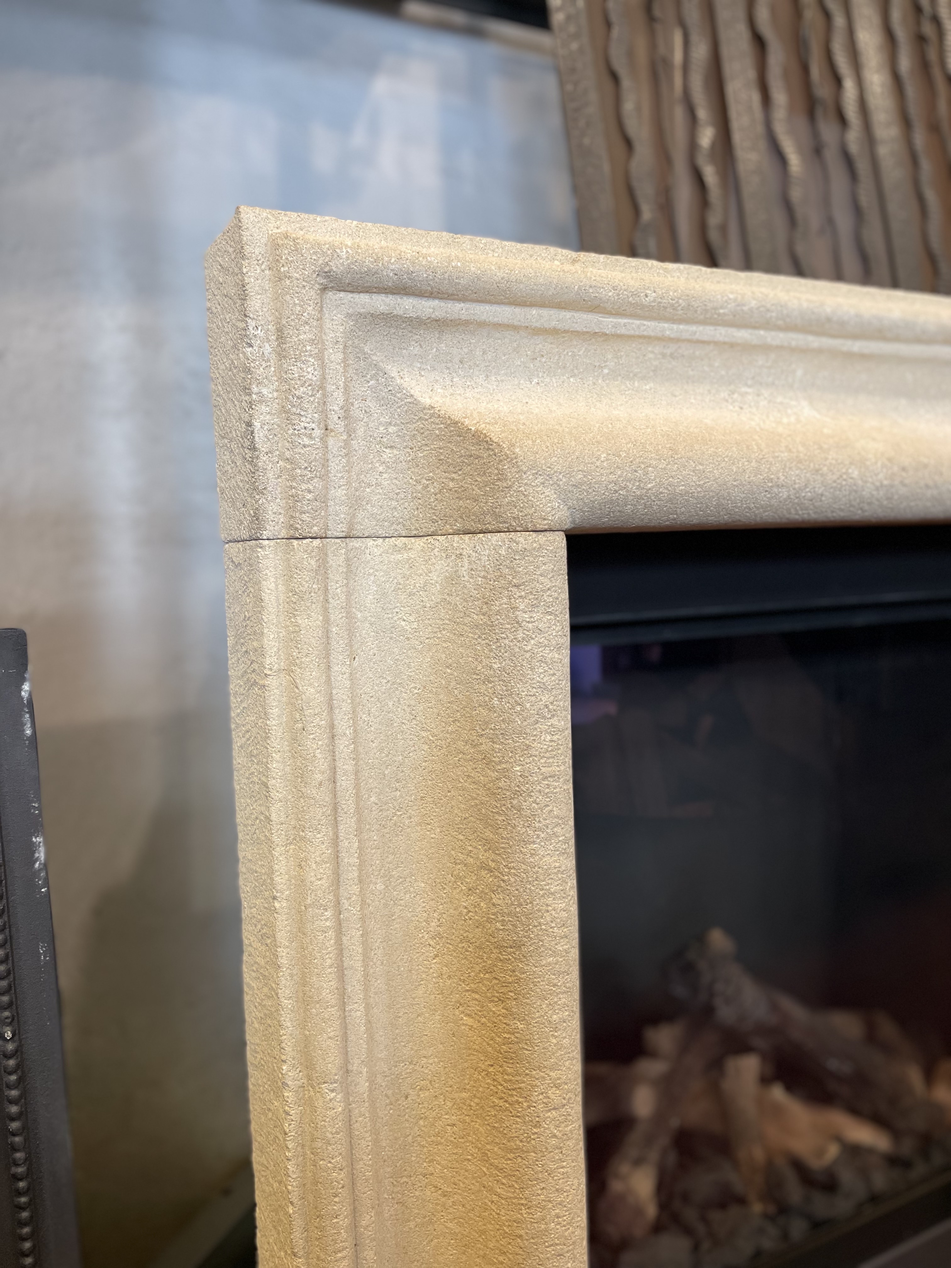 Cornice in pietra Salvator Rosa realizzata artigianalmente in pietra di Vicenza dorata. Misure L 125 x H 102 x P 12, bocca L 95 x H 87